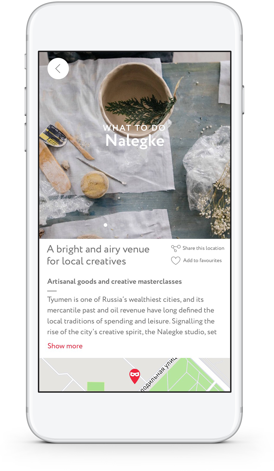 The locations and experiences are chosen by The Calvert Journal editorial team in easy-to-use categories: eat, drink, do, see, stay, travel and shop. Navigation was a huge priority for the app for us. I designed the interface so that the location/venue was no more than three clicks away. Extending the very same simplicity of use, integrated within the app is a very useful offline maps feature. Whether you're using mobile data or not, you can still use the offline maps feature and navigate your way to the destination.